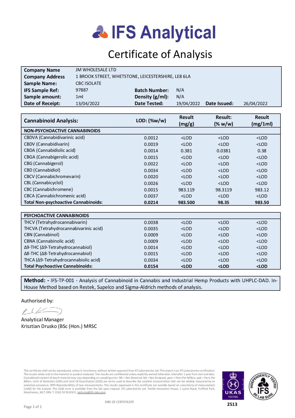 If you want to know more about our CBC Isolates, please contact our CBC Experts on whitelabel@jm-wholesale.co.uk or 0116 273 1706 (option 3). They will be happy to answer any queries you may have.